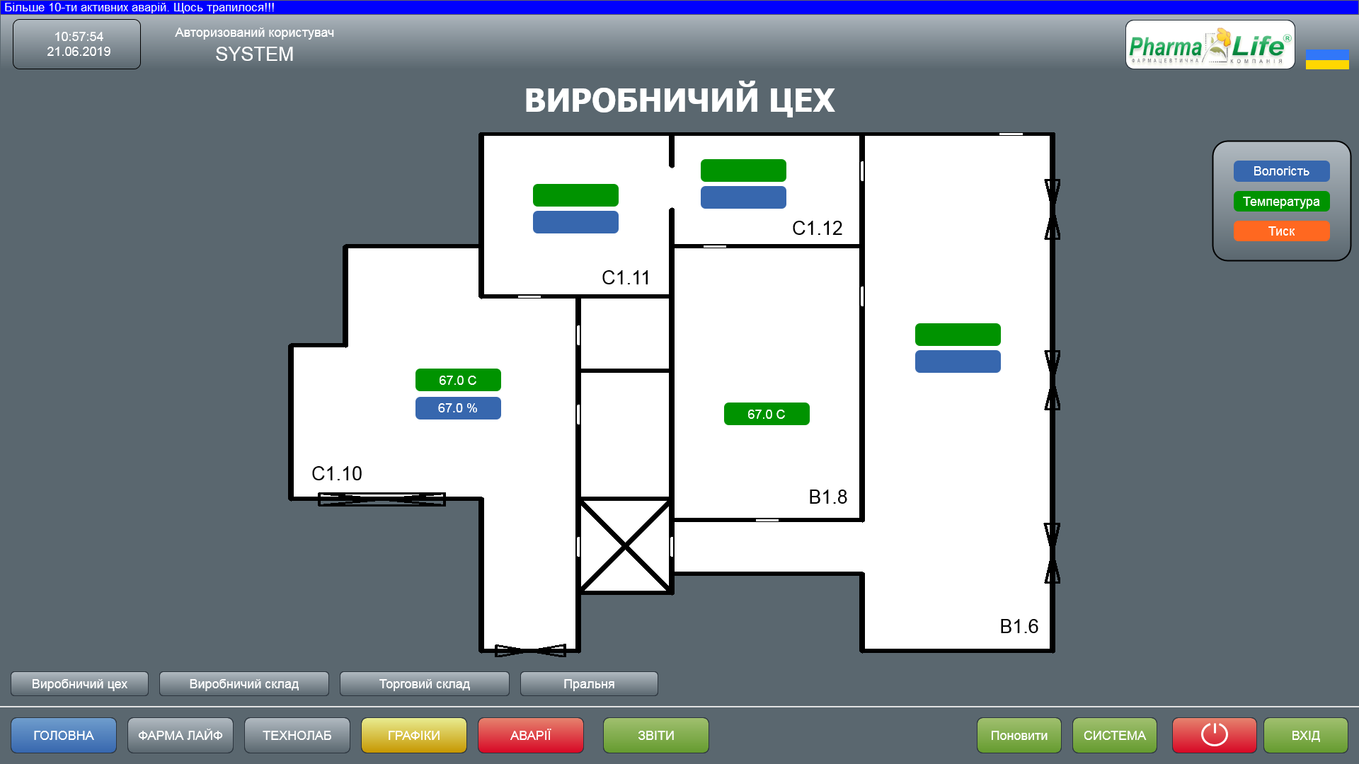 З метою підвищення якості продукції було прийнято рішення про впровадження системи керування мікрокліматом у виробничих, складських та допоміжних службових приміщеннях. Основною задачею системи було підтримання температури, вологості та тиску повітря в заданих межах.