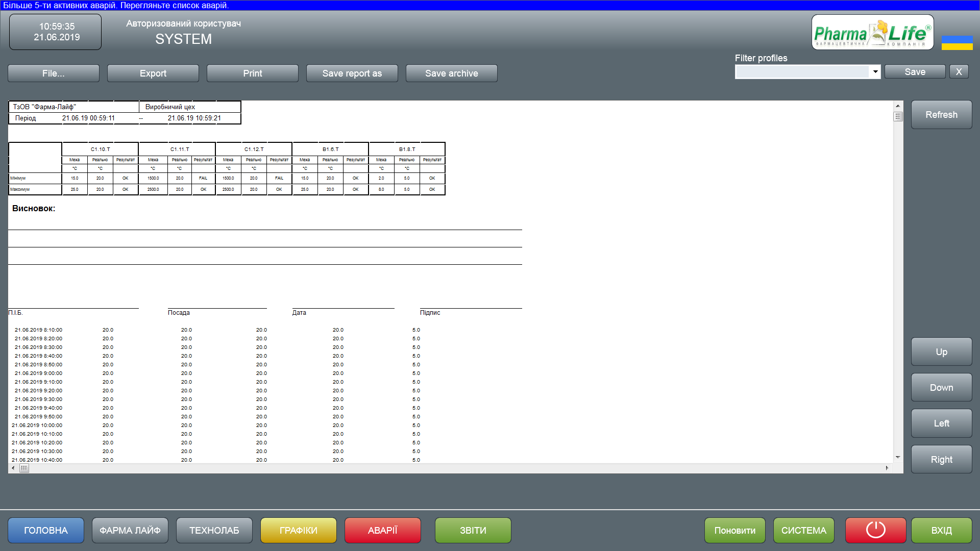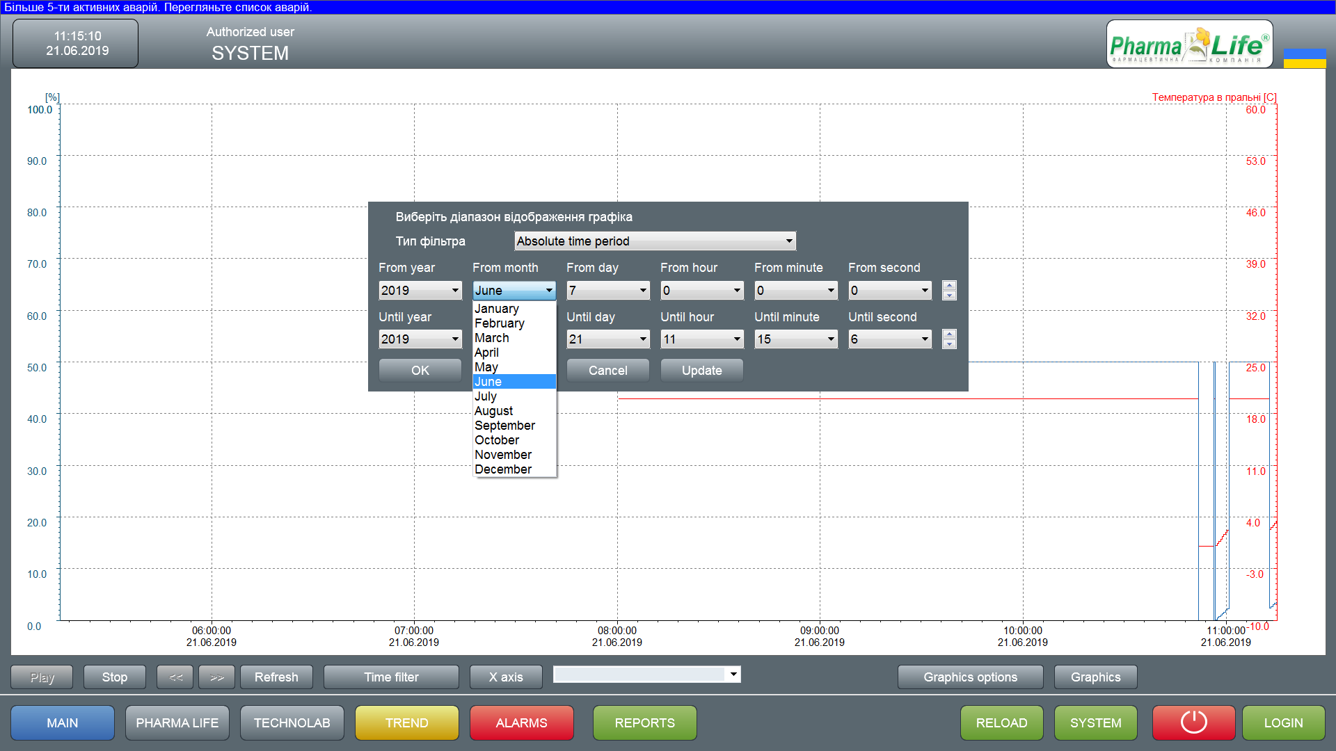 • перегляд історичних та онлайн даних у вигляді графіків;