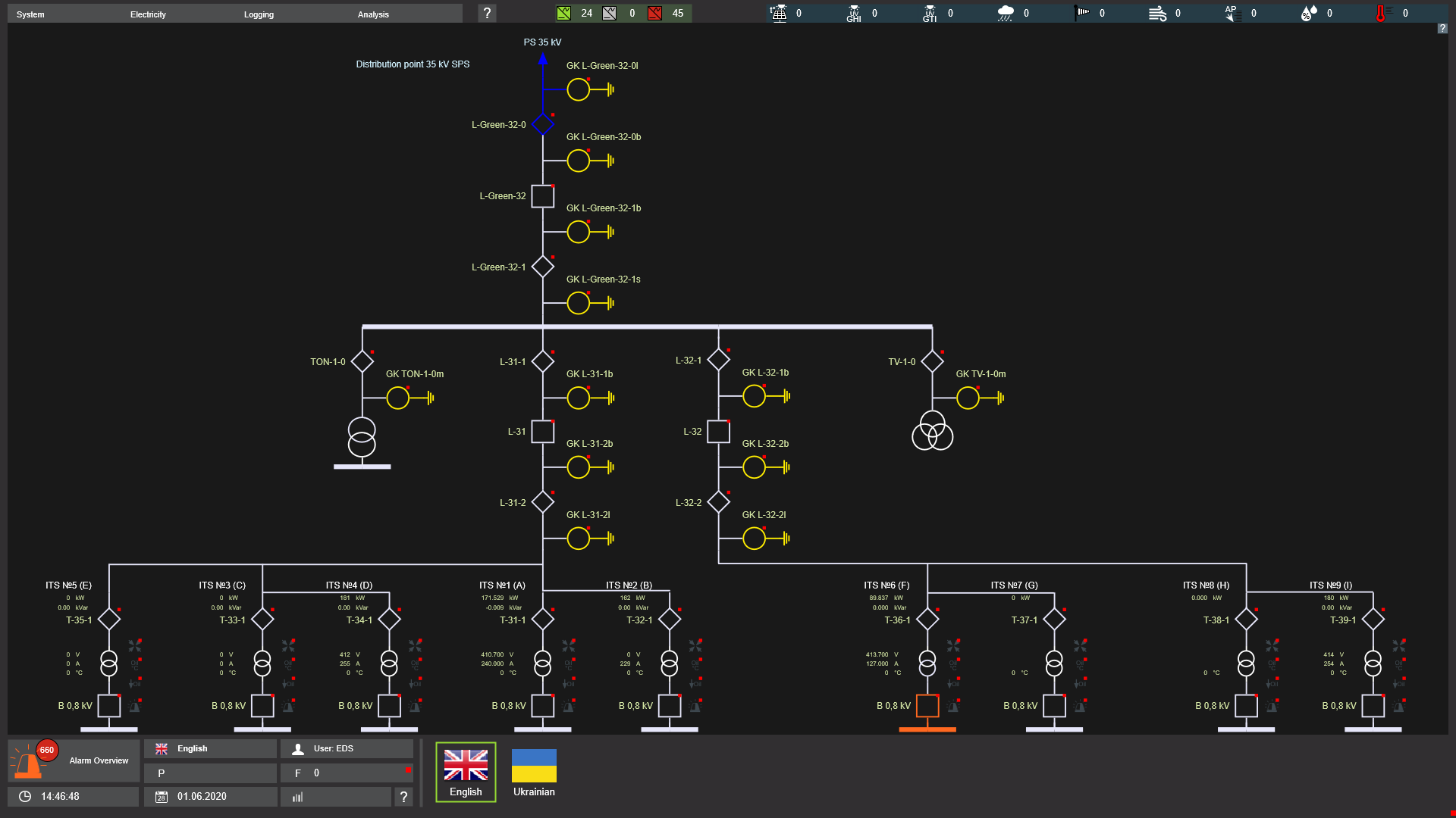 В якості автоматизованої системи диспетчерського керування на кожній станції було використано SCADA zenon зі стандартизованим проектним рішенням СЕС серії "SunPro", яке забезпечує розширену функціональність керування станцією, з поглибленим аналізом та інформуванням чергового персоналу.