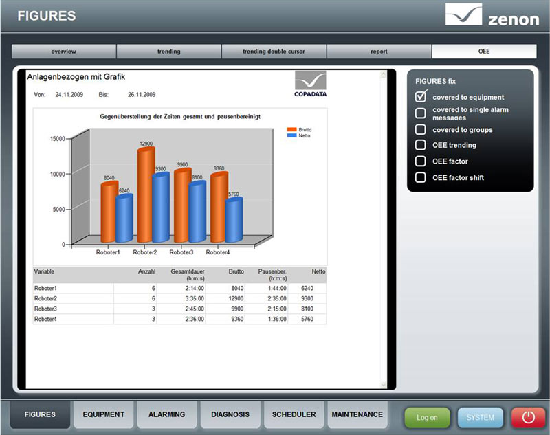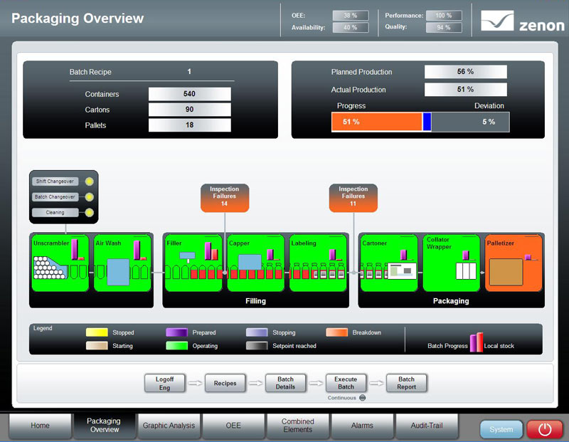 Благодаря тому, что zenon эффективно работает как на панелях оператора, которые устанавливаются непосредственно на оборудовании, так и на центральных серверных рабочих станциях диспетчерских пунктов, процесс производства находится под полным контролем. Вся информация в онлайн режиме поступает не только на монитор дежурного оператора, но и в плановые и аналитические отделы предприятия.