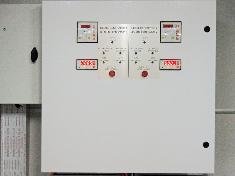 Система керування дизель-генераторами на основі контролера RGAM10 виробництва Lovato Electric (Італія) здійснює вимірювання основних електричних параметрів мережі (напруга, струм, частоту), робочий час основного та резервних дизелів. У разі невідповідності параметрів мережі необхідним (наприклад, напруга вище за номінальну), автоматично підключається резервне живлення.