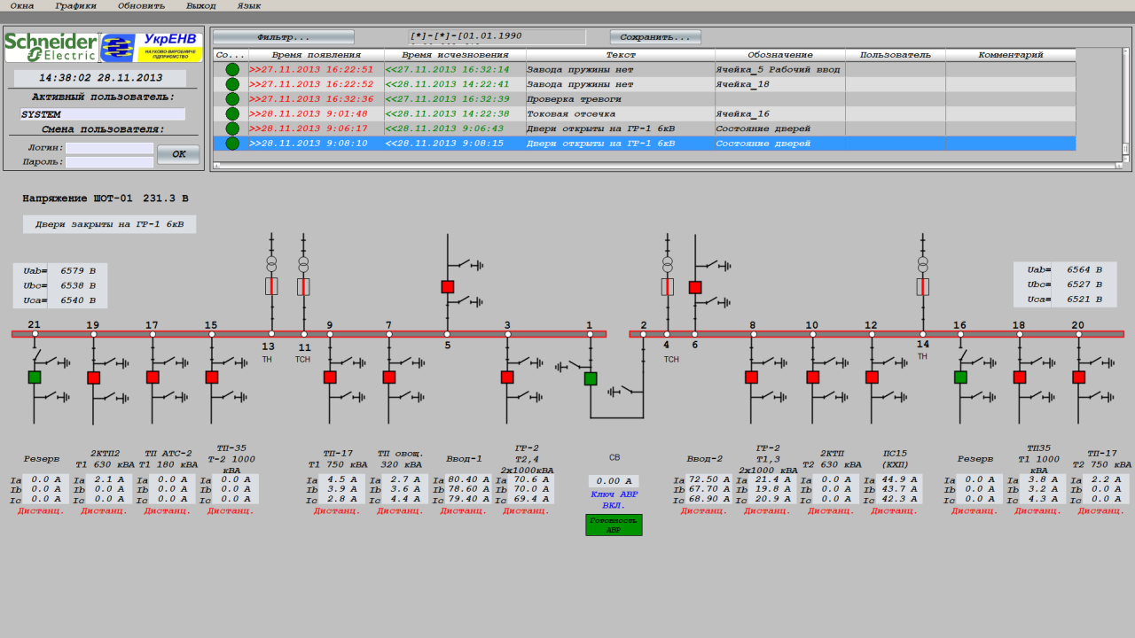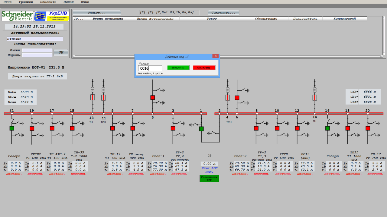 - Графічне представлення електричних схем з відображенням параметрів активного режиму диспетчерськими найменуваннями та забезпеченням можливості зміни оператором кількості одночасного відображуваних параметрів.