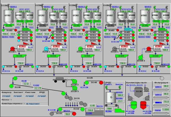 Призначення системи: оперативний контроль та керування технологічним процесом виробництва катанців з метою забезпечення максимальної продуктивності цеху при заданій якості концентрату.