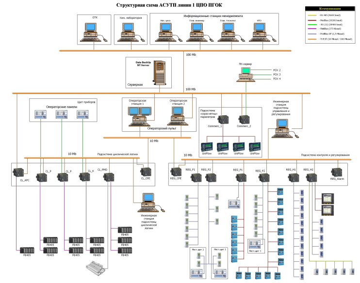 На нижньому рівні було використано вагові контролери, електронні реєстратори, вимірювальні перетворювачі.