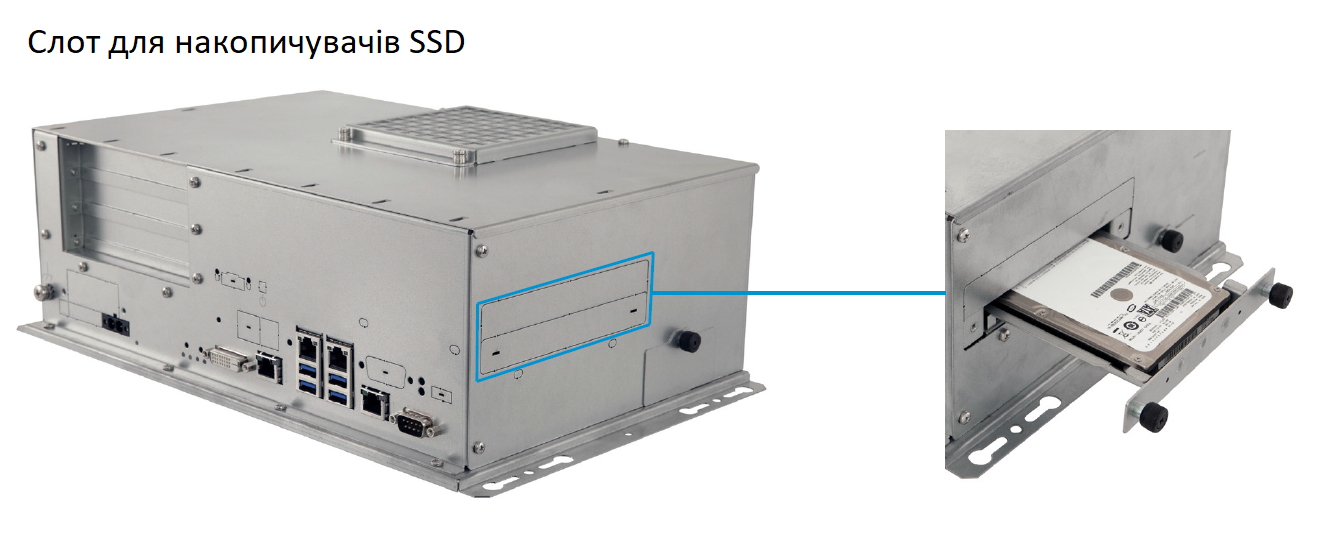 Накопичувач | CFast | 1x bootable CFast SATA III slot onboard with external access (up to 240GB) | ||||