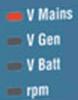 . При висвічуванні індикаторів Vmains, L1 та L2 висвічується значення напруги мережі між першою та другою фазами відповідно. Висвічування індикаторів L1-L2, L2-L3, L1-L3, Hz — означатиме, що вимірюється напруга UL1-L2, UL2-L3,UL1-L3, частота напруги мережі Vmains та Vgen — генератора при висвічуванні одночасно відповідно. Індикатор Vbat інформує про напругу акумуляторної батареї. Індикатор prm інформує про частоту обертання генератора. Значення параметрів можна переглянути за допомогою цифрового табло