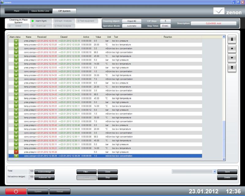 Система веде постійну реєстрацію подій та тривог, які з'являлися під час роботи процесу. За допомогою журналів хронологій оператор має повний контроль роботи обладнання.