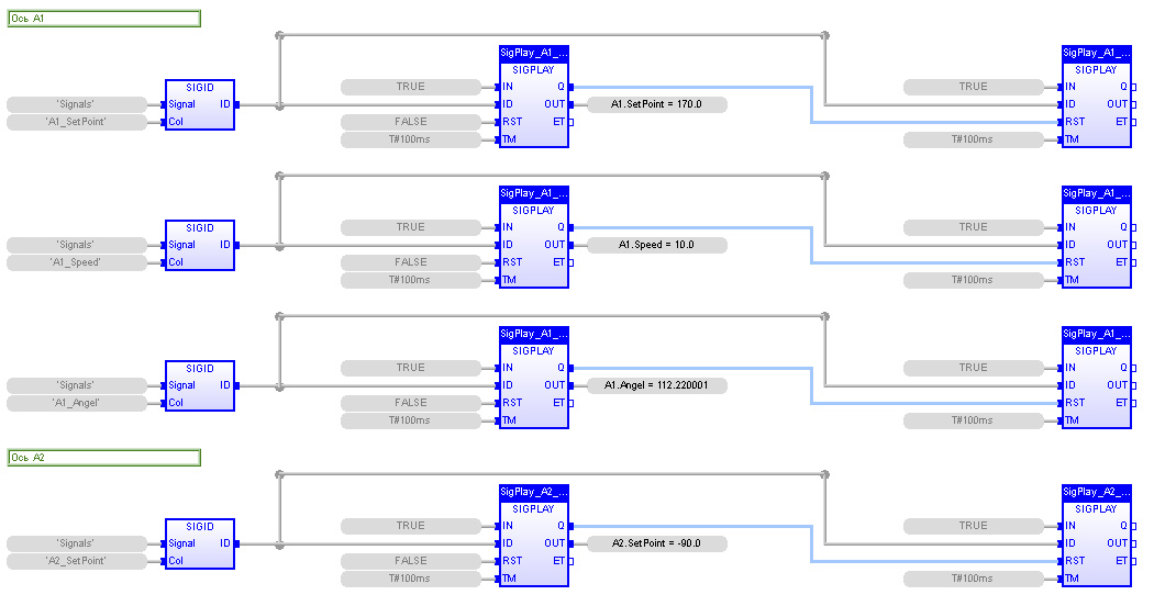 Рисунок 2.6 – Фрагмент програми мовою функціональних блоків FBD, що реалізує відтворення сигналів