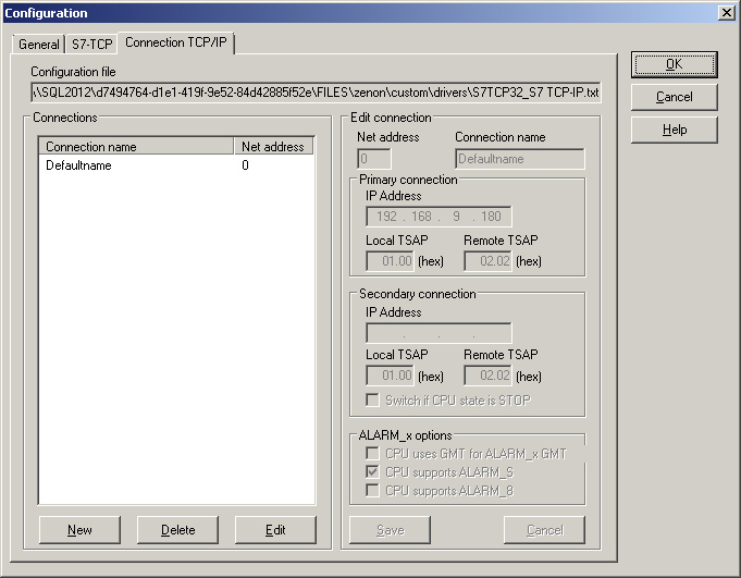 В якості основної IP-адреси контролера “Primary connection” задана адреса "192.168.9.180". Оскільки в системі не використовується резервування контролерів, резервна адреса “Secondary connection” не вказана.