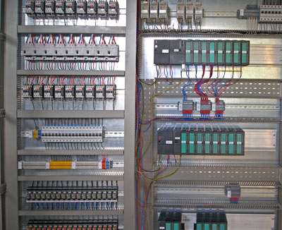 >Алгоритм керування технологічним процесом центральної НС та КНС в автоматичному режимі забезпечується програмовним логічним контролером VIPA 300S, а розподілених підкачувальних станцій — VIPA 200V у комплекті з набором модулів телеметрії VIPA TM-E. Місцеве керування, перегляд повідомлень про стан установок та активні тривоги здійснюється з операторських панелей OP03.